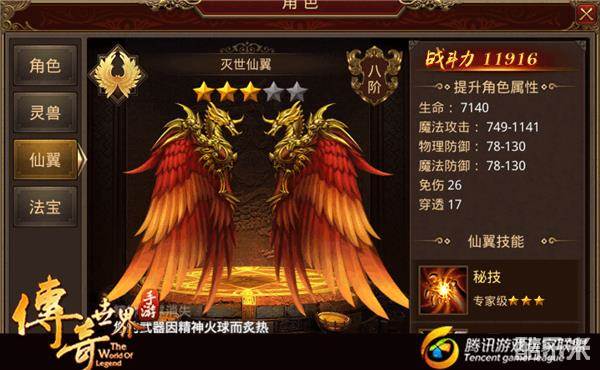 虽然仙翼的进阶需要大量的金币和羽毛,但是成长起来的仙翼比勋章更加可怕。一个高品阶和满技能的仙翼,可以为玩家带来10000+的战力加成。这个战力加成,是非常可观的。而且仙翼技能的提升,还能带来一些特殊属性。