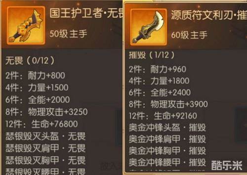 1.50级8件+60级4件