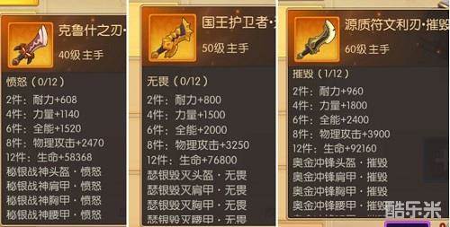 3.不同等级的套装属性,互不影响