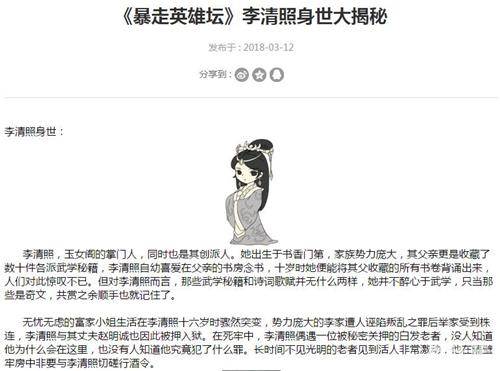 在旁人眼里,她或许只是一个德才兼备、武艺高强的门派创始人;而实际上,年轻貌美的她却已经历了旁人无法想象的重大波折…最近,《暴走英雄坛》官方网站公布了李清照的身世背景,万万没想到也是一番腥风血雨的经历。接下来是否会有更多人带来当年的江湖秘闻?我们拭目以待。