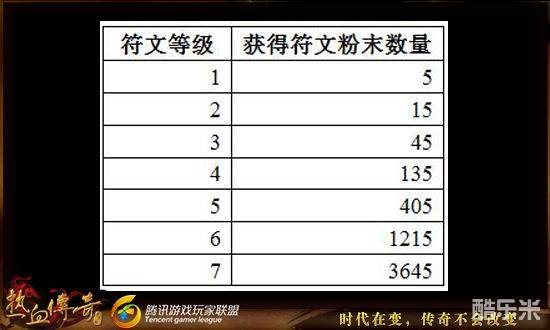各等级符文打粉获得的粉末数量如下图所示: