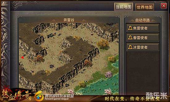 奔雷谷地图是我们的必经之地,属于激情区,玩家PK不涨PK值,不掉武器幸运,但死亡有几率爆出装备材料。奔雷谷中有野怪,分别是堕落法师、堕落道士、堕落战士、堕落弓手,这四种怪物的属性都不低,玩家最好组团前行,不要单人闯入怪物堆。三个BOSS的传送使者在地图最里面,所以想要摸到BOSS也是不容易。BOSS地图比较小,进出都需要NPC传送,BOSS刷新在中间点,大型行会比较容易包场。