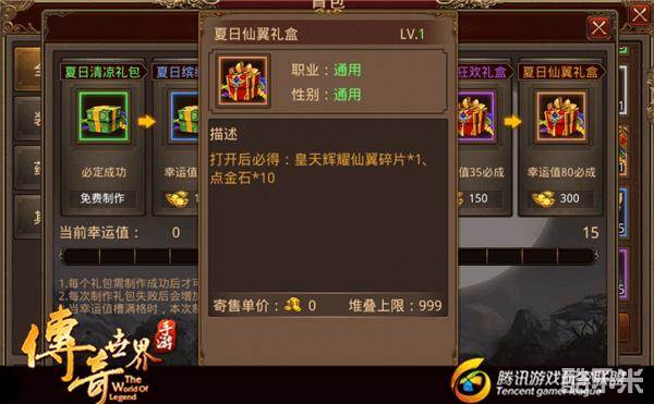 在活动期间,玩家每天可以免费制作一个夏日清凉礼包!然后可以通过花费元宝,制作夏日缤纷礼盒、夏日豪华礼盒…等礼盒!