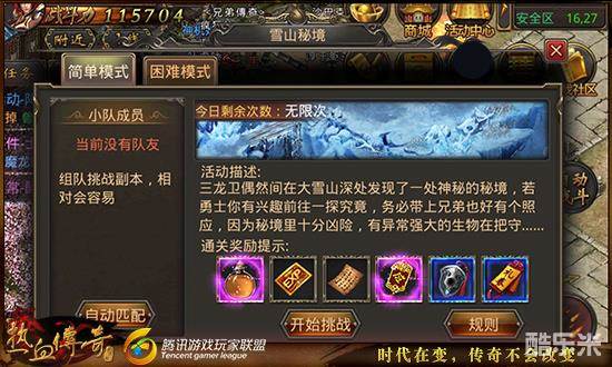 雪山秘境分为简单和困难两个难度,简单模式大部分玩家都能完成,困难模式只有部分高战玩家才能通关。如果实力允许,可以直接挑战困难模式,而不用再去挑战简单模式,因为完成困难模式的时候可以直接领取简单模式的奖励。