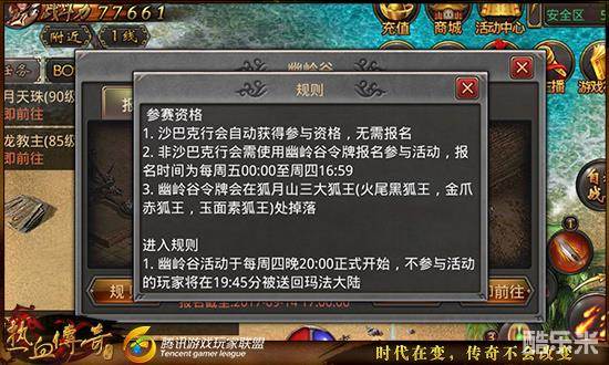 锁狐塔的狐王爆落包括功勋令、玄冰铁、声望令等常规的小BOSS奖励,更重要的是会爆落对非沙巴克行会来说非常重要的幽岭谷令牌,因为沙巴克行会是自动报名幽岭谷活动,而非沙巴克行会必须使用令牌报名。沙巴克行会如果不想让本服的其他行会也参与幽岭谷活动,必须确保拿下每个狐王才行。