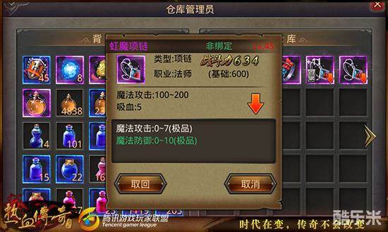 普通紫色装备虽然只是过渡装备,但对新区玩家来说已经弥足珍贵。紫色装备比较靠谱的获得途径是在降魔洞窟中获得晶魄,然后在铁匠铺抽奖,一般十个装备中有两三个是紫色装备。紫色装备中,最好的莫过于有吸血属性的虹魔首饰,虽然最近版本中推出了抗吸血属性,但吸血依然很管用,且新区玩家还尚未能大量获得抗吸血属性。虹魔首饰只能通过合成获得,获得途径相对较少,因此在交易行中的价格也略高。