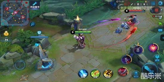 前期1级点2、3技能。干将莫邪的对线能力很强,这里有一个小技巧,就是开局干将莫邪先到草丛,等到兵线交汇后先利用三技能的双剑交汇打敌方中间的那只小兵,这样交汇后的双剑可以再溅射到另外的小兵,接着再使用二技能重复上述操作,就能很快地清理兵线,同时对敌人造成不低的耗血。干将莫邪没有四技能的视野距离提升是很难发挥消耗优势的,因此前期要稳定发育。