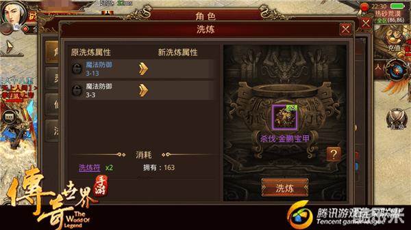 其二是选择性的洗练防御属性,首先魔防和物防不能只洗练某一个,所以在洗练时,可以把头盔、战甲洗练魔防属性,而腰带、靴子洗练物防,或者反过来也可以。尽量均衡一下,保证道士玩家能够应对不同的职业。如果玩家洗练紫色防御属性,那么一般洗练出一百多防御也是很简单的。