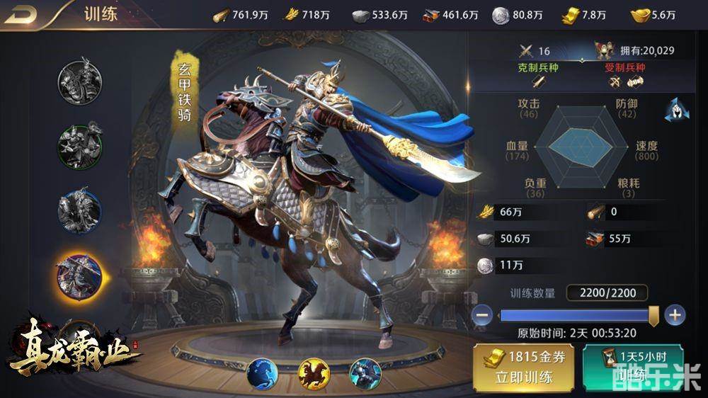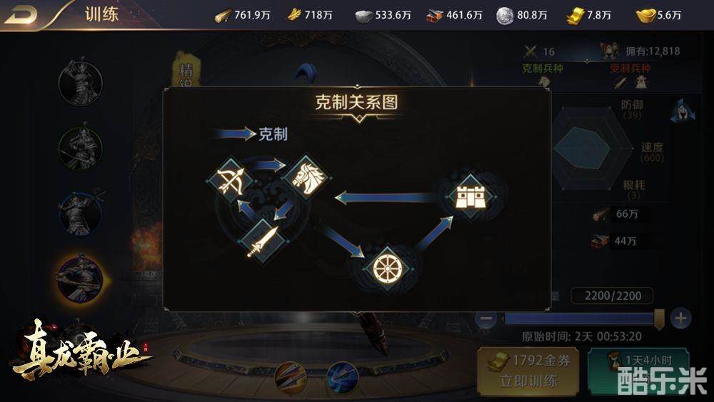 副本章节通关的同时,也是玩家官阶、武将兵种进阶的过程。不同于传统的战争策略游戏,《真龙霸业》在原有SLG玩法的基础上面,加入RPG养成玩法,不管是玩家个人还是武将兵种,均可不断进阶升级。其中,作为君主的玩家可通过帝王之术、宫殿等级以及官爵系统,不断增强战力;武将可通过升级、升星、进阶等玩法,提高武将个人能力。除此之外,通过“书院”的科技研究,武将所率领的兵种同样可以不断升级,从基础的步兵到铁甲卫、剑盾士,再到最终的御林神卫,各大兵种均可不断晋级,助主公成就最终的霸业!