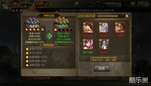 在动漫里,七个葫芦娃合体变成金刚葫芦娃,孙悟饭和特兰克斯合体变为悟天克斯。这里的合体可作为一种变强的手段,在攻城三国神将试炼与动漫里的合体有着体异曲同工之处。攻城三国的神将突破是通过收集不同武将的武魂碎片进行试炼,每个12资 质试炼所需的武魂碎片都不同。
