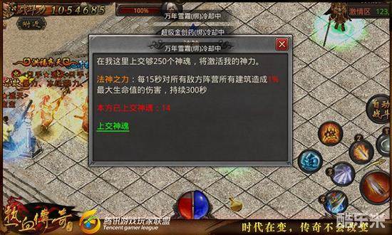 法神之力可以在300秒内每15秒对所有敌方阵营所有建筑造成1%最大生命值的伤害,总计造成20%的伤害,需要上交250个神魂,和法师职业的定位一样,这名神将提供的buff也非常具有攻击性,同时也很拉仇恨,当你开启此buff之后,你的行会极有可能会受到其他三大行会的集体围攻,所以要谨慎使用,建议在游戏快要结束的时候找准机会开启。