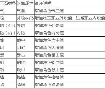 《无双之刃》游戏目前用11种宝石,每种宝石附加的属性都不一样。需要根据玩家选择的职业特性来进行相关配搭。以下是相关的玉石列表。