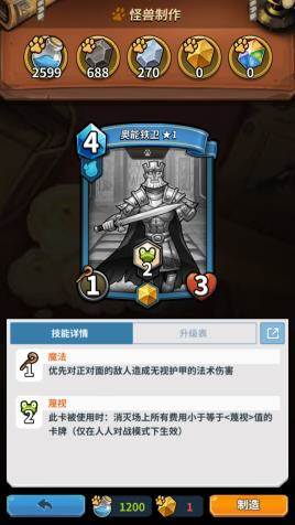 推荐理由:唯二蔑视,另一个是地龙,黄金卡比彩钻好升级,推荐低费铁卫,无视所有条件,二费(包含)以下必死,是清场利器。即便对方没有低费铺场,你也可以用来带走对方的低费装备。如果再没有用,缺水晶就把它献祭了吧。就目前环境而言,带一张是很有必要的。