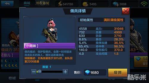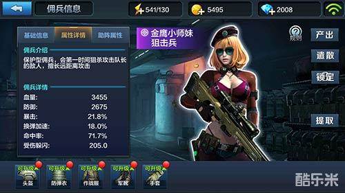 作为狙击兵,一般是在后方进行作战,精准和伤害都是普遍要高的,对于金鹰小师妹来书,血量相对较少,需要可以吸收伤害的佣兵来进行配合,况且小师妹的一直是玩家们获胜的关键,小师妹死了,就等于团灭啊!多派点佣兵进行保护吧!
