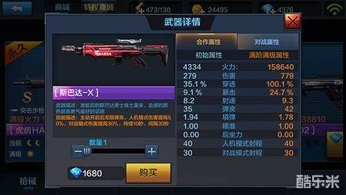 合作属性:火力15864、伤害779、穿透100.1%、暴击24.7%、射速9.3、弹夹42、填弹1.78、精准1.00、后坐力0.00。