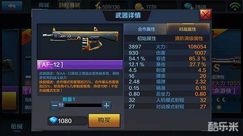合作属性(满级):火力108054、伤害1076、穿透85.3%、暴击27.7%、射速5.0、弹夹20、填弹2.32、精准0.15、后座力0.80、人机模式射程32、对战模式射程27