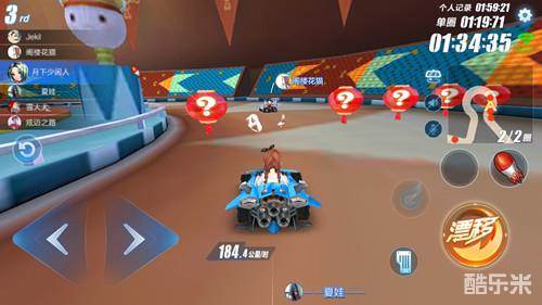 在比赛中的第一圈保持第二,到了第二圈的最后半圈时超越对手,就能够很轻松的拿下比赛。而要做到这一点,最好事先备齐两个道具,一个是攻击道具酷比或者飞碟,另外一个是防御道具护盾。当行驶至最后半圈时,先用攻击道具干扰对手实现超越,然后保持第一时刻警惕,用护盾保障最后一程的安全行驶,这样就能成功在终点前完成反超。