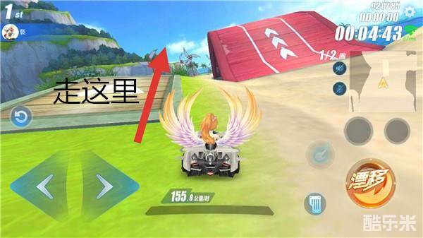 开局,车手会遇到一个红色的拱桥,拱桥坡度太高,会使赛车失去大量速度,因此走拱桥左边。拱桥左边的木板路才是最佳道路(如下图),赛车从此处通过将会进行一次飞跃,可以使用两次小喷,是开局的最佳道路。而在第二圈的时候,如果经过这里是有一个氮气的话就可以直接走拱桥,毕竟使用氮气飞跃得更远。