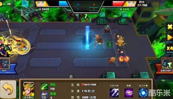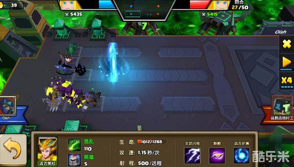 最后来看游戏中后期,在战就战的中后期,双方的阵型基本已经定型,这时候合理的阵型将能够让你的兵力发挥事半功倍的效果。如上图的对战,在单波兵的前提下,必定是中路牛头和对方无名恐怖者对战,之后右方的复活狼骑攻击无名公布者,魔法攻击打重甲的优势。下路则是总指挥对战地狱炎,普通打中甲有130%的加成。而后排上,左侧方美杜莎,死灵法和赤色飞龙都会优先攻击牛头,牛头死亡后攻击死灵法召唤的骷髅,最后才是攻击掠命者。而下路的黑鸟(毁灭灾星)同样会优先集火牛头,这就为总指挥击杀地域炎提供了时间,由于左侧方的黑鸟是放在地域炎之前的,战就战中一个建筑摆位的距离在140码左右,黑鸟的攻击距离是450因此在兵线交接后,黑鸟仅仅位于地域炎身后100-150的距离,总指挥在击杀地域炎之后就会立刻转火黑鸟。从上图中可以看出右侧放的兵力比左侧方甚至要低20,然而由于阵型摆位的优势,双方的实际战力右侧方玩家至少要强10%。