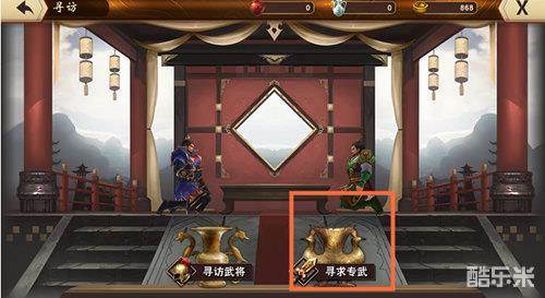 进入“寻访”,选择“寻求专武”。点一下,说不定你爱将的专属武器就在其中。