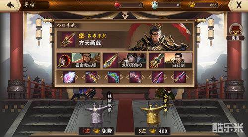 今日专武里如果当天没有主公心仪的专武,建议主公可以等一天再来寻访。除了寻访功能以外,还可以去专武商店逛一逛,看看有没有自己心心念念的专属武器。