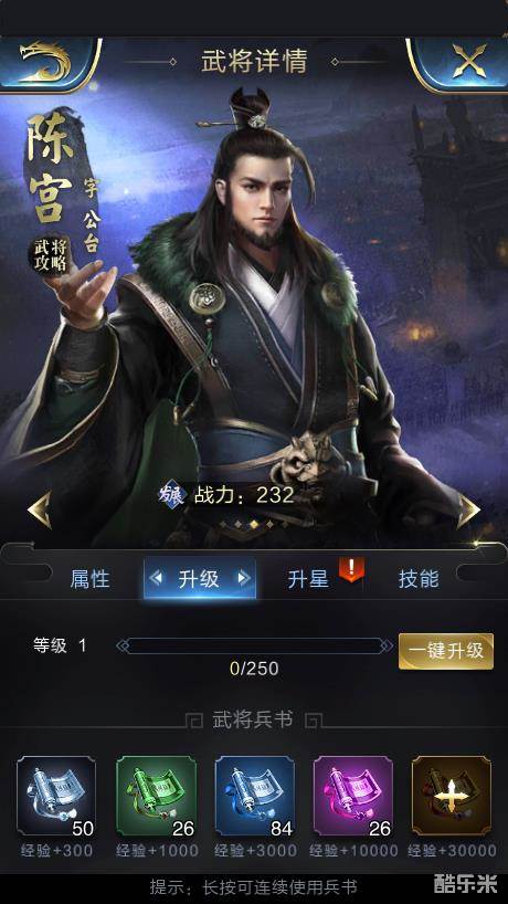 3、升阶与升星:通过陈宫将魂或者万能将魂进阶,满阶后可以升星,最高为五星。