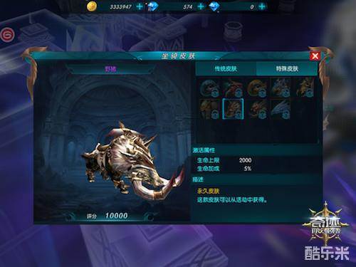 坐骑皮肤除了获得独特外形的作用外,多元的属性特征,更是一绝。新鲜出炉的野猪皮肤,青面獠牙,霸气侧漏,生命上限提升2000,生命加成提升5%,优先保证生存力的勇士,这款皮肤你值得拥有;威名赫赫的地形兽皮肤,血盆大口,脚力惊人,生存能力更强劲,生命上限直接提升5000,攻击增加500,弓手系职业必须收入囊中。看了强力的属性,有没有心动啊,要问皮肤何处寻,小编遥指活动中。