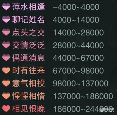 第三种就是真·NPC,每人每天的好感度上限是10000,回礼要更次一些,送同样的物品涨的好感度是基本是第二种的1.6倍,同样是一级宝石,涨的好感度是600,比如那个碰瓷的玲珑坊管事……别问我是怎么知道的谢谢……我心疼我本来拿来送香帅的20块宝石……这种NPC除了特殊需要,大家就不用刷了,坊间传言给混混刷好感度就不会被碰瓷,我认为并不靠谱,大家可以去试试emmmm