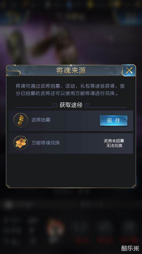 2、兑换:利用10个甘宁将魂可以兑换得到紫色战争系武将甘宁,而万能将魂在武将未招募时无法兑换。