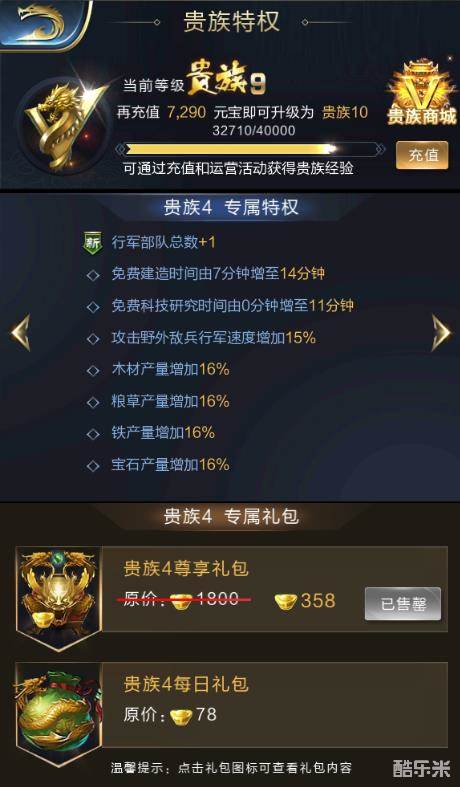 可以说我们的行军队列如果有条件一定要进行提升,只有更多地行军队列才能让我们的发展更加快捷,让我们的战斗更加灵活。其中贵族等级达到四级可以开启一个额外的行军队列,这渠道我们可以通过每日的登陆来累计,也可以直接通过充值来实现。其余的行军队列则需要通过科技的研究来进行了,在兵法类的科技中有着行军队列的科技,作为第一个科技门槛很低,随后还有扩展的中级行军队列和高级行军队列,后两者的难度就要大上不少,需要我们一定的科技基础才能实现。