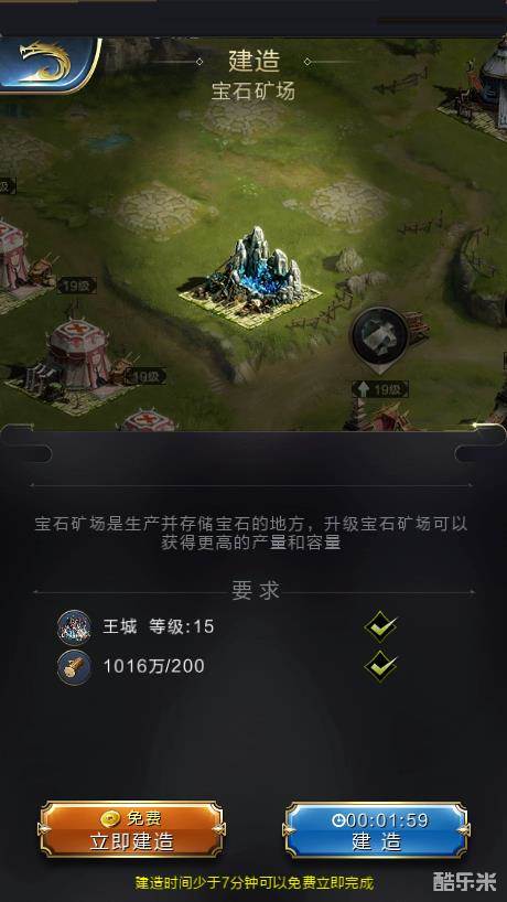 其实在《乱世王者》手游中,宝石矿这种资源在后期是有着非常重要的作用的,所以15级之后一定要尽快建造并升级宝石矿场。