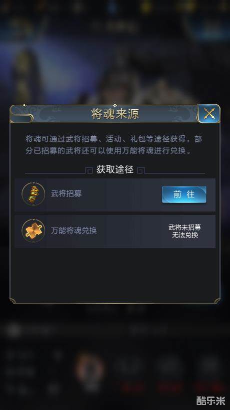 2、兑换:利用10个黄盖将魂可以兑换得到蓝色战争系武将黄盖,而万能将魂在武将未招募时无法兑换。