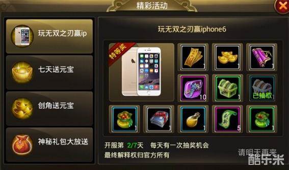 活动期间每天登陆游戏,可以进行一次摇奖活动。