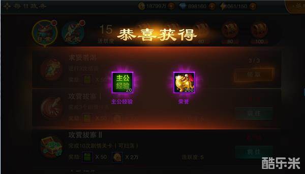 日常任务除了提供主公经验,还包含其他资源奖励,如果想要快速提升主公等级,每天的日常任务可不要错过。