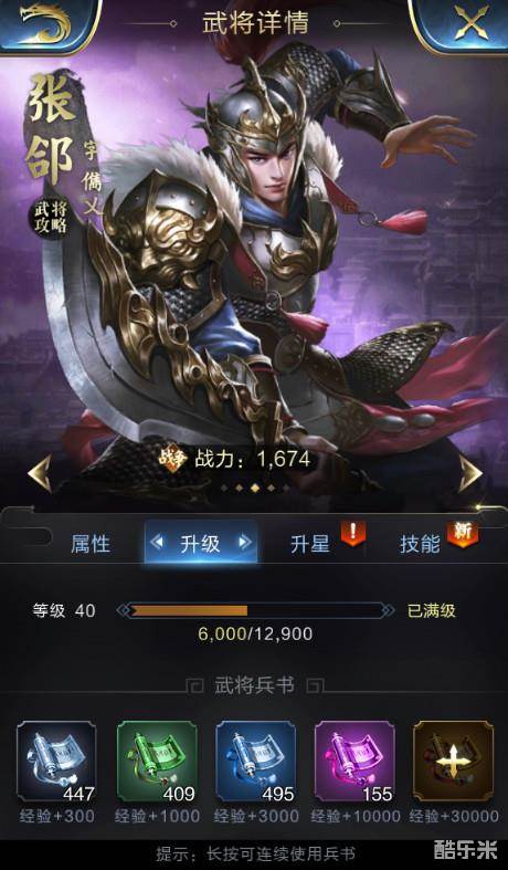 1、武将升级:通过武将招募、商城购买、攻击野外敌兵获取兵书来为武将升级,初级兵书、中级兵书、高级兵书、极品兵书、绝世兵书可分别为武将提升300、1000、3000、10000、30000经验。