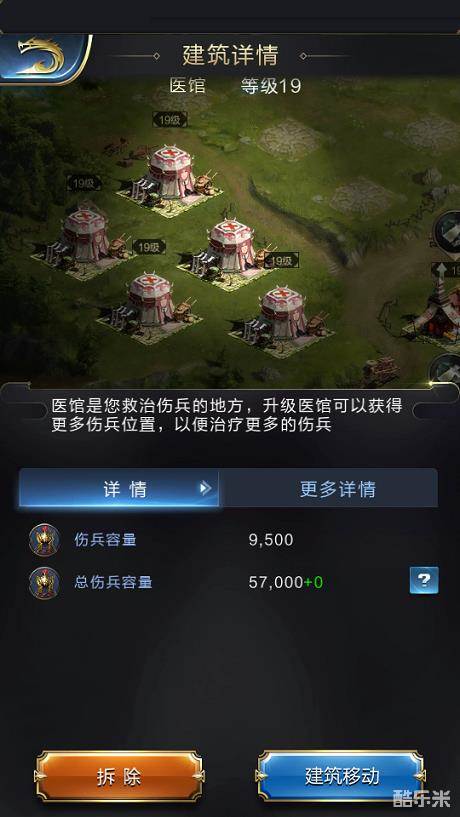 可以看出在《乱世王者》手游中,医馆对于我们伤兵的恢复速度影响十分巨大,等级越高伤兵恢复越快,容纳伤兵越多,并且增加的战斗力也越高,所以多多提升医馆的等级和数量变相的让我们的军队更加强力。