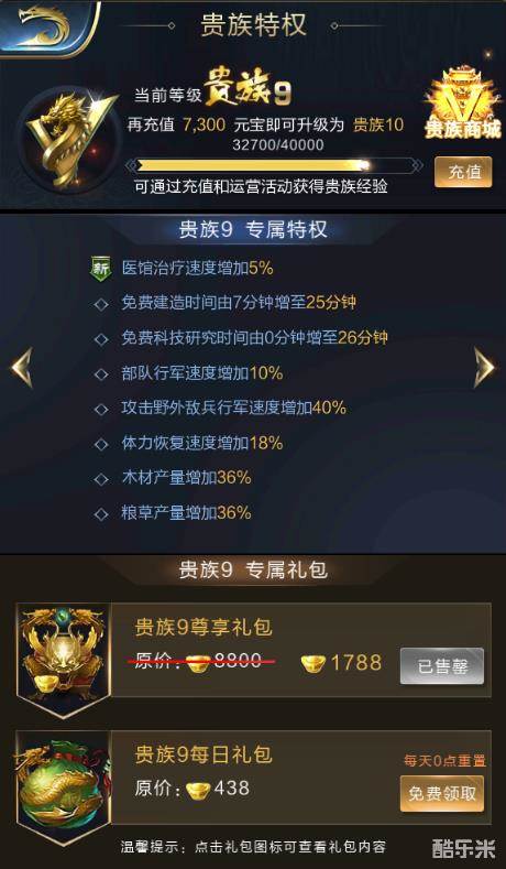 达到相应的贵族等级即可解锁相应等级的贵族特权,具体特权可直接查看贵族页面。并且,贵族还可以购买尊享礼包和免费领取每日礼包。