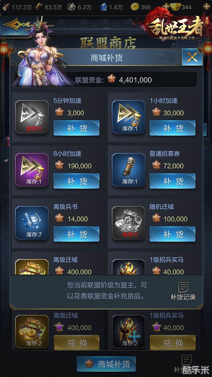 游戏里面的商城道具是永远不会“卖完”的(因为可以随时补货),联盟成员假如想要什么道具而其又暂时缺货,可以与盟内盟主或者官员联系,因为他们都可以随时补充货物。盟内有权限补货的人员也可以多备一些消耗量较大的货物,免得麻烦(一小会就要补一次货),从功能上来说,也是一种便捷的人性化设定吧。
