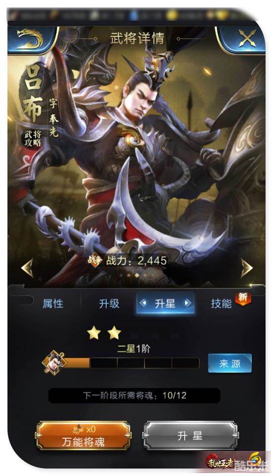 对于实力强的君主而言可以从最强君主活动中获取一定数量的吕布碎片,对于战斗力较为薄弱的君主只能从武将招募中抽取。之后,我们就要好好的培养他,使其成为君主的利刃,本章就为各位君主介绍一下适合吕布的技能。