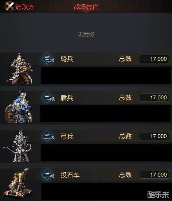 首先,让我们看下进攻方的阵容(2,3级兵种,士兵总战力:103700)