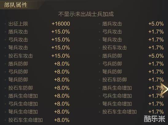 5、其他——以上是主要的属性增加途径,当然,还有其他的一些途径也能增强部队的属性,这些就有待玩家自己去发现啦