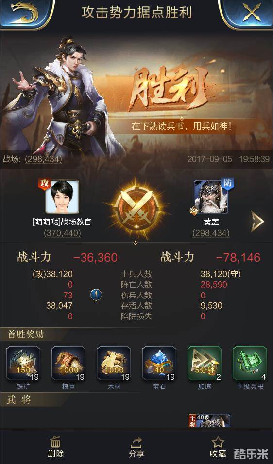 可以看到进攻方的属性会比防守方高,但是并不是太多,接下来让我们看一下战斗结果