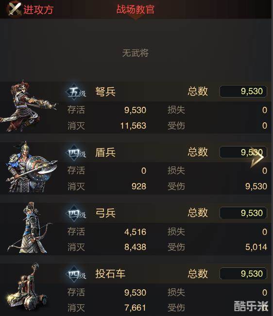 可以看到,攻防双方的兵种等级和数量是一模一样的