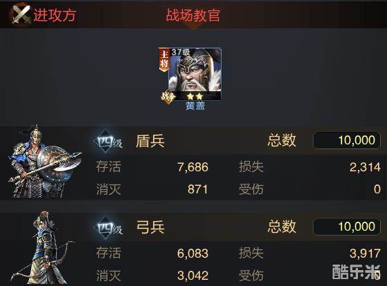 可以看到,盾兵和弓兵组合只是让对方的盾兵受到了伤害,而盾兵和骑兵组合则伤害到了对方的弓兵