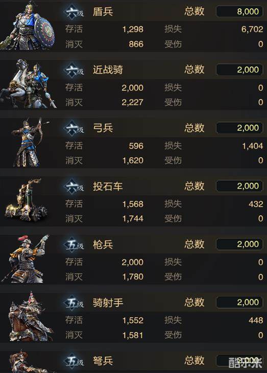 2、盾兵和攻城车都是防御兵种,出征的时候带其中一种即可,不然会分散防御力量,导致损失上升