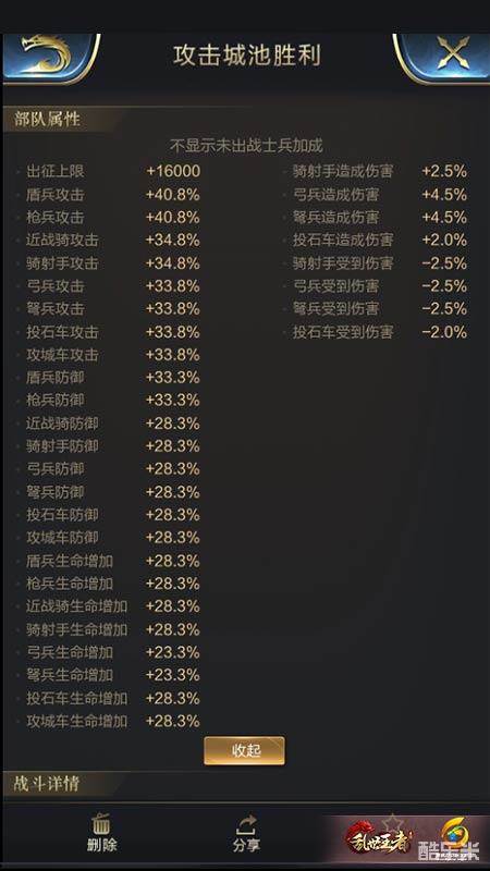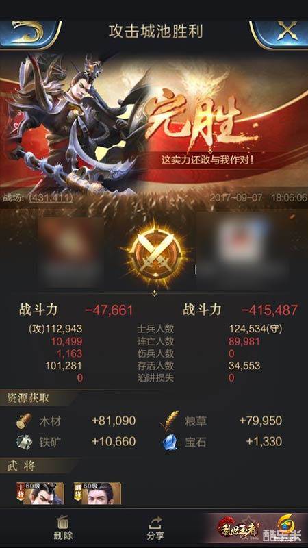 最后,对面没有布置陷阱,就无法阻挡住我方前排的力量,更不要说后排的输出军队了,而且还没有驻防的武将,这样军队就没有多余的加成,自然只能被我方洗劫了。