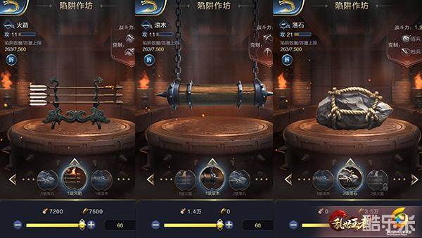 陷阱有火箭、滚木、落石三种,守城主要是防守,所以我们应先摧毁他们的防御部队再摧毁他们的攻击性兵种,玩家应设置较多的落石,先击退他们的盾兵和枪兵,突破防御消弱近战输出从而缩短攻击时间,再通过火箭和滚木的配合,减少主攻击力骑兵及其他兵种的数量进而降低他们的攻击力,推荐落石五成,火箭三成,滚木两成,如此守住城池不再是难题。