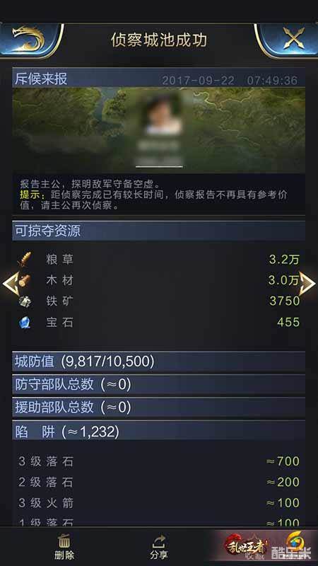 游戏中有些君主因为无法适应这个战争不断的环境而选择放弃,这些君主的王城就可以称为死城,毕竟他们永远不会上线,也再也寻觅不到报仇的机会。这些君主的战力虽然不高,不过城池内却拥有一些资源,虽说资源可能并不会很多,但是也不能放弃这个机会,每种资源获取几万也是不错的,毕竟进攻也就产生几十个死兵,还算划算。遇到那些资源丰富的君主就更幸运了,轻松将几十万资源收入囊中。
