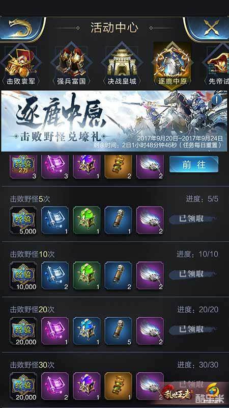 有些活动是互通的,我们需要把消耗降到最低、用最少的时间来完成这些活动,可能大家还在打别的野怪完成逐鹿中原的活动呢。我还是强烈推荐初期打10级以下的袁军,毕竟比其它野怪掉落的奖励好多了,还有几率掉落金币。活动对于处在游戏初期的我们尤为重要,要时刻关注游戏活动的走向,能更好立足于乱世之中。