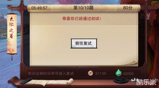 初试就是回答十题,答对六道通过,并奖励经验和铜钱。
